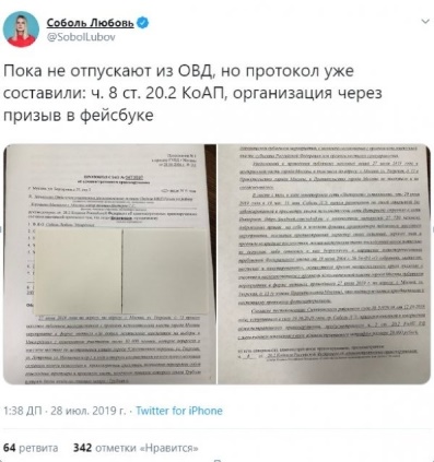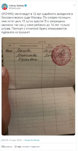 И только Любови Соболь удалось избежать наказания. «Правая рука» блогера Алексея Навального, живущая в «Центре сбора подписей» из-за выдуманной голодовки, вспомнила, что числится матерью. Об этом она сообщила всем подписчикам Twitter, когда ее пыталась задержать полиция – создавала флер неправомерности действий госслужащих.