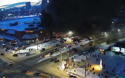 Центр города заволокло дымом: в Челябинске загорелся вещевой рынок «Европа-Азия» (ВИДЕО)