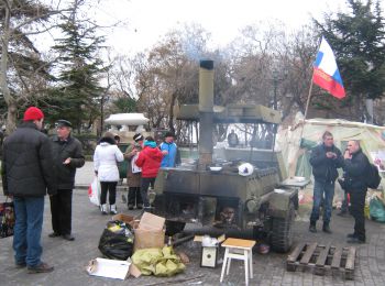 Как передает корреспондент «Совершенно секретно» из Севастополя, обстановка в самом городе довольно спокойная. Люди толпятся в основном около горадминистрации, в город прибыло много иностранных журналистов. В центре Севастополя развернута полевая кухня. Второй день в городе резко падает курс гривны. Зато некоторые торговые точки вдруг сделали большие скидки на товары — возможно, боятся, что дальше у людей не будет денег и доходов в связи со всеобщим хаосом. А местные жители больше всего боятся, что подорожаний.