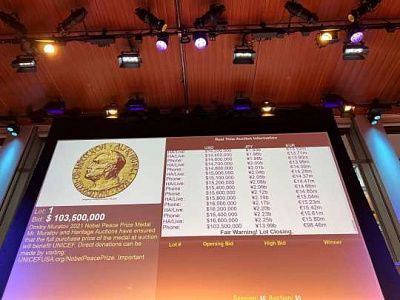 Ушла с молотка: Нобелевскую медаль Дмитрия Муратова продали на аукционе в США за $103,5 млн (ВИДЕО)