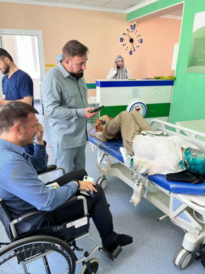 Руководитель "Команды против пыток" (Минюстом РФ признан иностранным агентом) Сергей Бабинец, находящийся в больнице с пострадавшими, сообщил, что туда прибыл уполномоченный по правам человека в Чечне Мансур Солтаев.