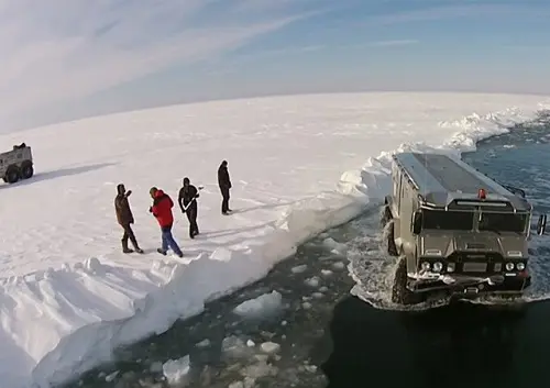 «Зато, периодически проваливаясь под лед, мы заодно убедились что «Бурлак» способен справиться с такими ситуациями. Поняли, какие еще ситуации могут возникнуть, как мы будем из них выходить,  - улыбается Алексей Макаров. — Проверили, как поведёт себя вездеход в солёной воде, которая вымывает смазку. В общем, поплавали без неприятных последствий. Когда мы пойдем к Северному полюсу, плавать нам предстоит много и часто».