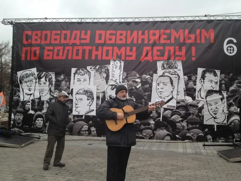 На митинг вышли сторонники различных оппозиционных движений и гражданскими активистами, которые держат в руках флаги «Левого фронта», «Солидарности», РПР-ПАРНАС, «Партии 5 декабря», а также плакаты с требованием: «Освободить фигурантов „болотного дела“. Организаторы акции вместо сцены на этот раз установили большой стенд с лозунгом „свободу обвиняемым по “болотному делу». На сугробах они установили транспаранты с фотографиями всех задержанных, которые проходит по «болотному делу».