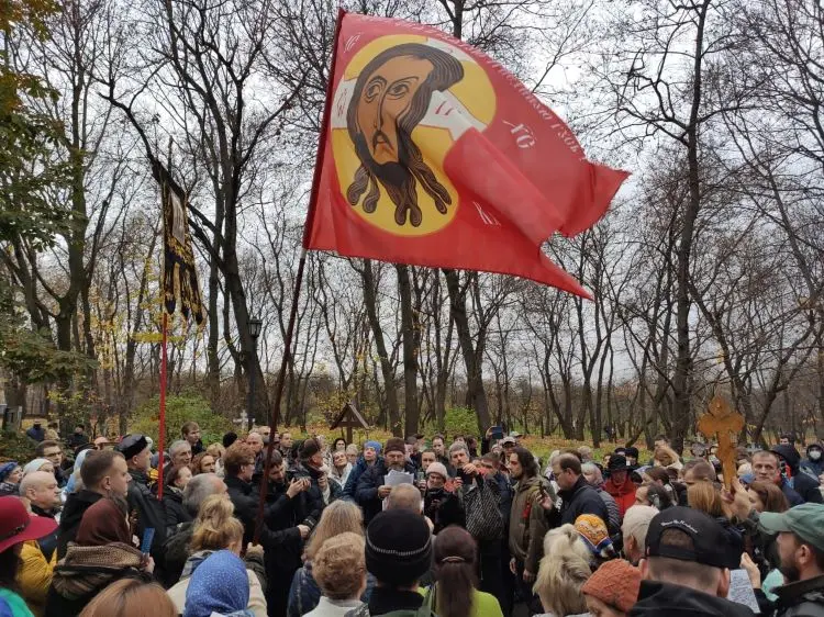 "Совершенно секретно": Сегодня, 4 ноября, в День народного единства в парке Коломенское, у храма Иконы Казанской Божьей Матери состоялся крестный ход и молитвенное стояние сторонников ПДС НПСР (Постоянно действующего совещания национально-патриотических сил России). В прошлые годы данная акция под брендом Русского марша традиционно проходила в формате шествия от метро «Октябрьское поле», передает наш корреспондент.