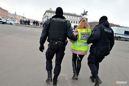 Около 50 человек задержано в Питере, пишет «Фонтанка». На «сидячей» акции в городе задержали двоих журналистов и двух художниц, которые рисовали Исаакиевский собор.