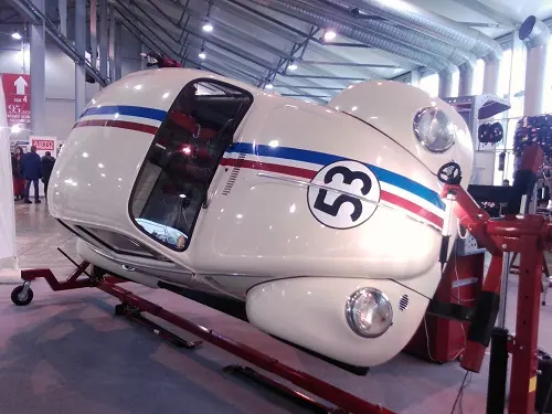 На выставке также присутствовал самый романтичный экспонат – «Жук», помогавший добиться победы в ралли Линдси Лохан. Volkswagen «Херби» – главный герой комедии «Сумасшедшие гонки». Под стать своей роли в фильме, «Жук» был закреплён под углом, как будто минуя крутое пике. Данный экспонат был выпущен в Германии в 1964 году.