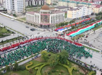 В шествии 7 октября от площади «Минутка» до центра Грозного, по официальным данным, приняли участие чиновники, активисты молодежных движений, студенты и старшеклассники, образовав при этом двухкилометровые полотнища флагов России и Чечни.