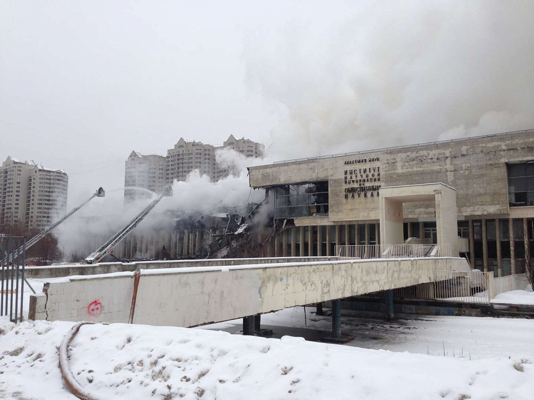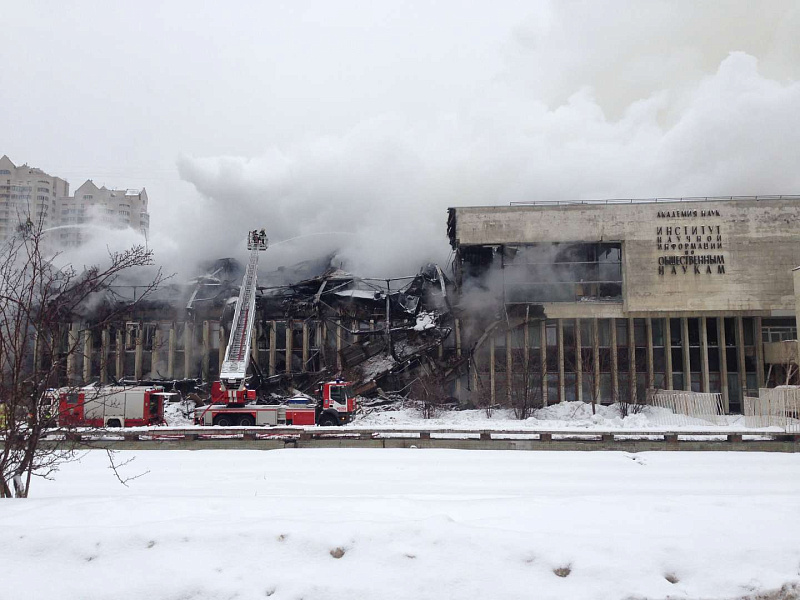 Сильный пожар, начавшийся вечером 30 января, более суток бушевал в ИНИОН — крупнейшем научном информационном центре России в области социальных и гуманитарных наук. Сильно пострадала уникальная библиотека института, насчитывавшая 14,2 миллиона экземпляров на древних, современных восточных, европейских и русском языках.