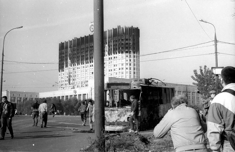 Что это было – антиконституционный роспуск законно избранного парламента? подавление вооруженного мятежа реакционных сил? личное столкновение двух амбициозных лидеров, Ельцина и Хасбулатова? – не поднимался.