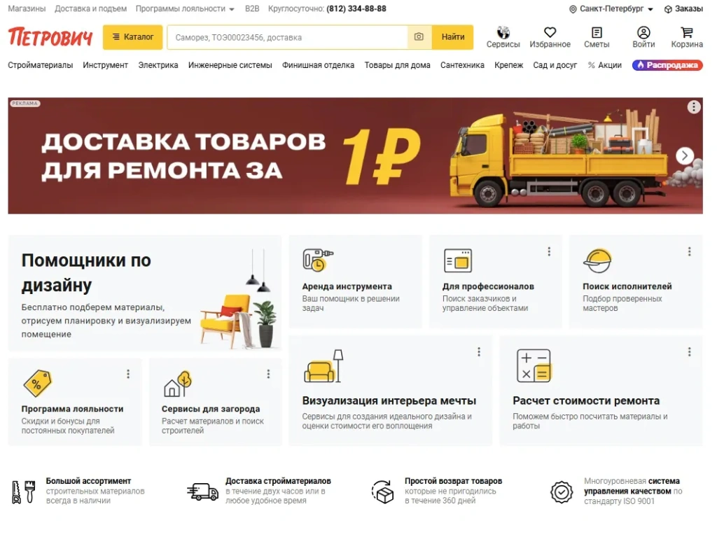 «Петрович» – не просто магазин строительных материалов, а целая экосистема для всех, кто строит или делает ремонт. Компания давно и прочно закрепилась на рынке Санкт-Петербурга, став одним из самых популярных и узнаваемых брендов. Главная фишка гипермаркета – максимальное удобство для клиента, достигаемое за счет современных технологий и продуманных сервисов. Здесь можно найти все – от кирпича и сухих смесей до сантехники и электроинструментов.